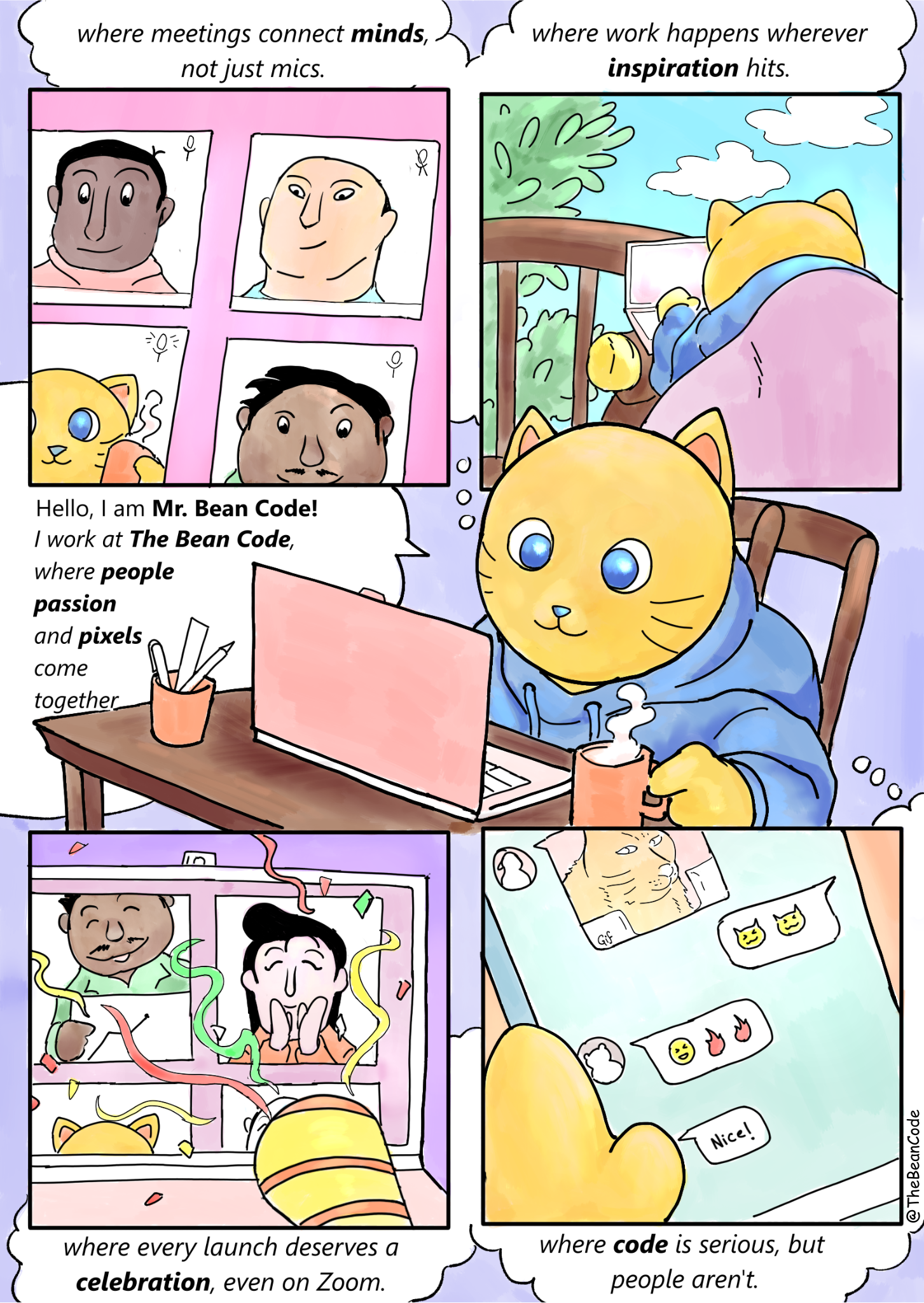 A warm introduction to the values, mindset, and collaborative spirit that shape how we work at The Bean Code, brought to life through our mascot, Mr. Bean Code.
